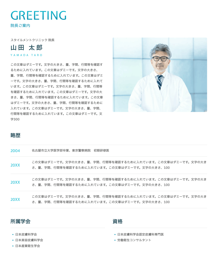 また、患者様に対して、「どのようなクリニックでありたいか」を「ご挨拶」として伝えることも効果的です。