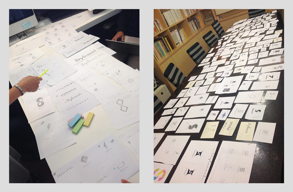 集まった膨大な数のラフは、モチーフやキーワードごとにカテゴライズし、どの方向性がブランドパーソナリティを最もよく表現できるか議論を重ねました。